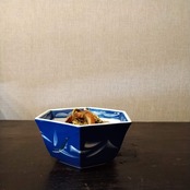 自らを外敵から守るため、進化のためにジャンプするようになったと言われるトビウオですが、骨董で探すトビウオもまた、現実そのものに格好いいといいますか、スタイリッシュなデザインのものが多いような気がします。こちらは瀬戸焼の器。深さのしっかりした鉢は六角形。縁起の良いデザインであると同時に涼しげでもあります。サラダや煮物だけでなく、丼物のごはんや、具沢山のおそうめんを入れても。使用例で煮物をいれた画像もありますのでイメージの参考にしてください。