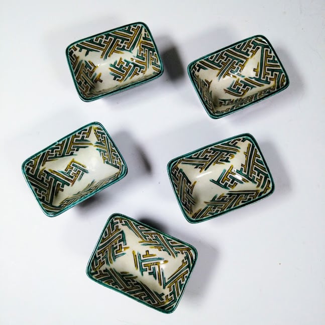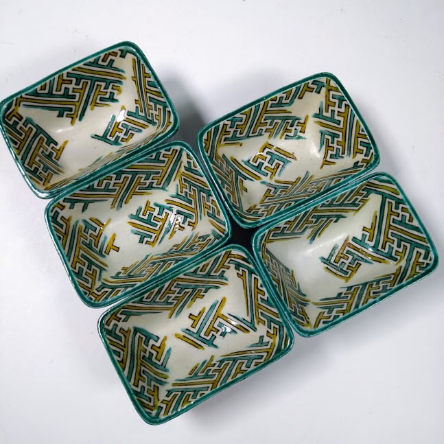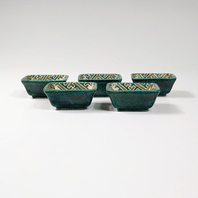 徳田八十吉 九谷焼 作家の器 角 猪口 盃 酒器 小鉢 珍味入れ 小向付 紗綾形 繁り葉文 重ね葉文 陶工 初代か 彩り テーブルコーディネート 映える器 ★検/ 吉田屋窯 再興九谷【BE262】