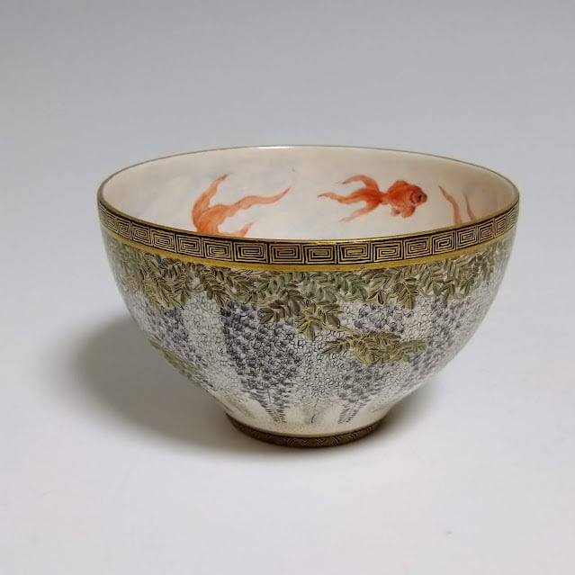 ◆京薩摩 藤棚に金魚図茶碗 京都陶磁器合資会社