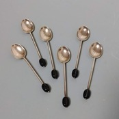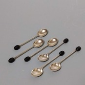 【状態】コーヒー豆のシンプルなデザインが素敵な、マッピンのデミタススプーン(純銀製)6本セットです。1920-30年代のアールデコあたりに最初に登場したデザインで、イギリスで長く愛され「ビーンズスプーン」の呼び名で親しまれました。遊び心を感じますね。