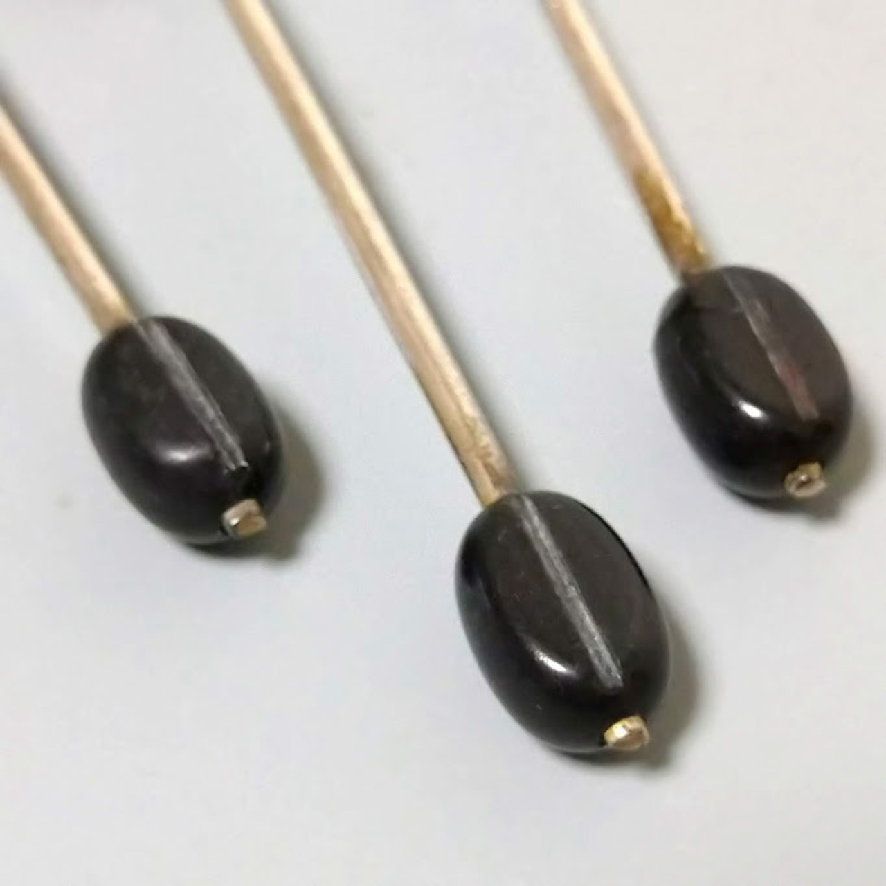 漆黒のコーヒー豆の素材はおそらくエボナイトかと。経年劣化で少しヒビやキズがありますがご使用には問題ないと思います。。ホールマークから、純銀、マッピン社、英国シェフィールド製と分かります。(年代は刻印が少し判別しにくく1927年か1952年のどちらか)