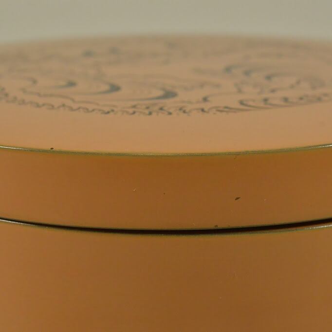 美しい芥子色の蓋付きの菓子器です。波模様が黒く彫り込まれています。黒の三足がすっきりとしたアクセントとなり、お洒落にテーブルを演出してくれます。蓋と身のかみ合わせに経年による少しウキがあり、自然に蓋をした際には画像17枚目のように何ミリかはまらずに上にずれます。上から少し押し込むときちっとはまります(=画像18枚目19枚目参照)。
