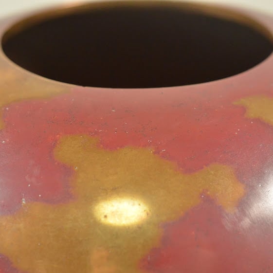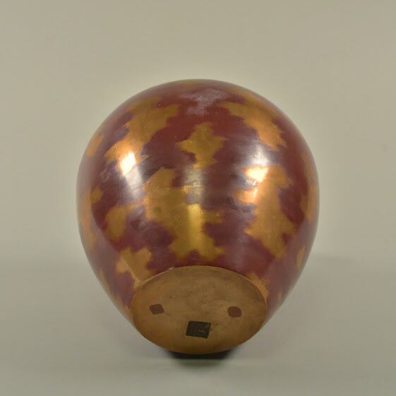 佐野天明鋳物師 正田賜谷 斑紫銅 花瓶 底に「正田賜谷造之」四方印有 高さ18.2㎝ 栃木県伝統工芸 日本金工 花生 花入 インテリア ディスプレイ 用の美【BE419】 | 3hige antique store | 京都・古門前の古美術店 | 三髭堂