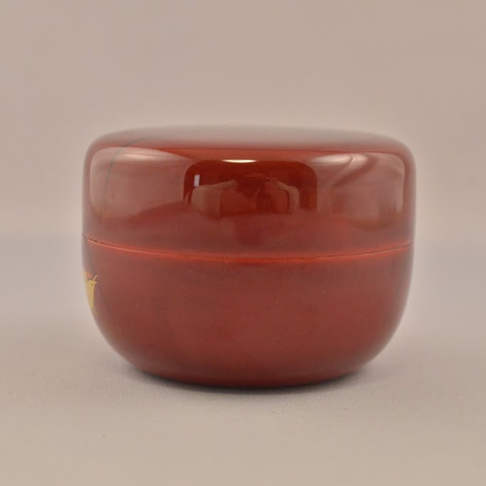 井伊宗観は彦根藩藩主であるとともに石州流の茶を極めた茶人。十二月棗は宗観の好んだ棗であり、花鳥蒔絵・様々な形の茶器・塗り方で十二月を表します。こちらは9月、秋の景色の棗です。 少し汚れ。