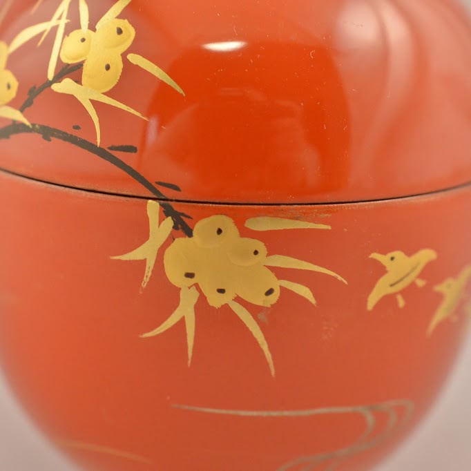 井伊宗観は彦根藩藩主であるとともに石州流の茶を極めた茶人。十二月棗は宗観の好んだ棗であり、花鳥蒔絵・様々な形の茶器・塗り方で十二月を表します。こちらは11月、秋の景色の棗です。 わずかに汚れ スレ