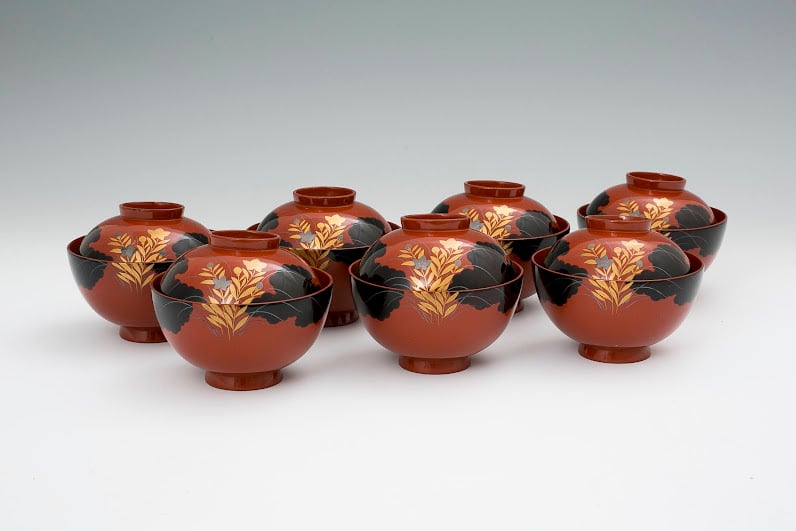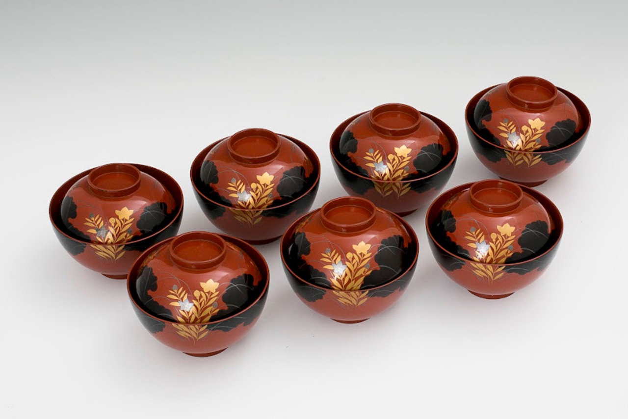 輪島塗 秋の七草 秋草 蒔絵 朱塗 お椀 吸物椀 汁椀 蓋椀 蓋付きお椀 7客組 七客揃い セット アンティーク 和骨董 茶懐石 懐石の器 日本の美 うるし 漆器 和食器 芒 尾花 菊花 桔梗 萩 秋の草花 季節を楽しむ 暮らしを彩る器 テーブルコーディネート【BA88】