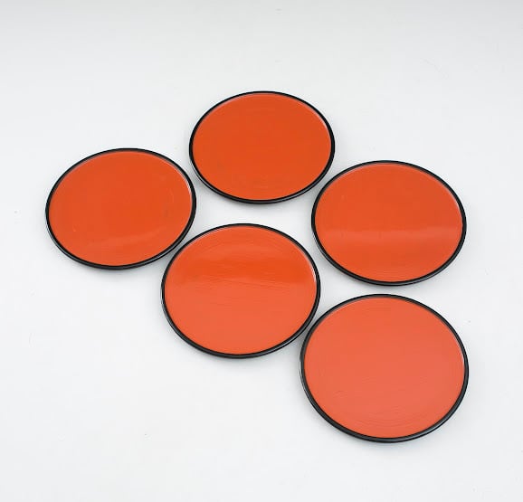 日の丸 銘々皿 菓子皿 菓子器 黒塗朱塗 漆器 茶道具 民藝 日の丸盆 日之丸 漆芸 シンプルデザイン テーブルコーディネート 5枚組 五枚セット【BA248】 | 3hige antique store | 京都・古門前の古美術店 | 三髭堂