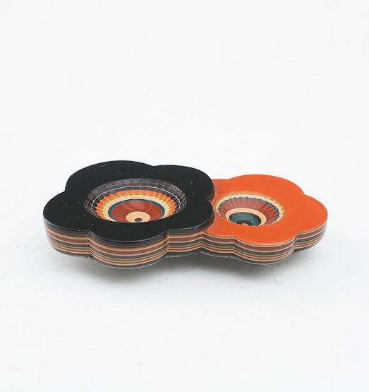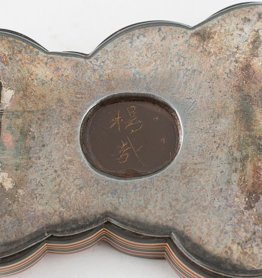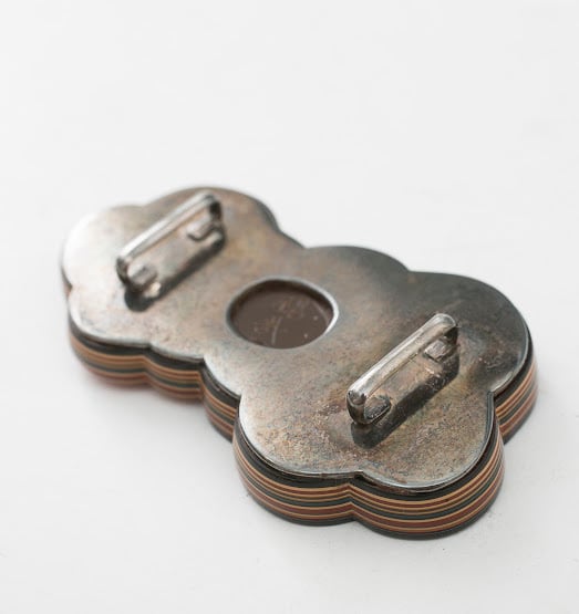 山下楊哉(やましたようさい 1903-1988)は香川県生まれの漆芸家。人間国宝音丸耕堂の実弟です。こちらの梅の帯留は色漆のグラデーションをいかして花の中心部が表現されており、美しい立体感を生み出しています。状態もよく美品。