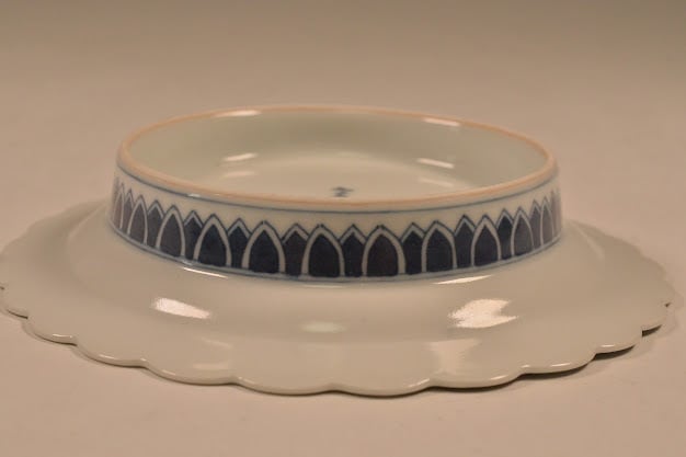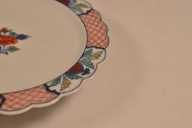 今泉今右衛門 錦渕浪菊形高台皿 輪花 菊花形 牡丹 青海波 剣先高台 5枚 五枚 共箱 うつわ 茶道具 茶懐石 和食器 伊万里 有田焼 鍋島焼 懐石の器 作家物【BE523】 | 3hige antique store | 京都・古門前の古美術店 | 三髭堂