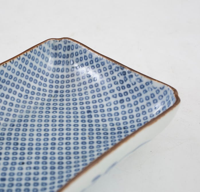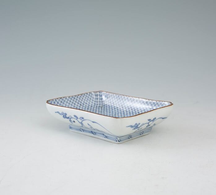古伊万里 伊万里 型紙摺 摺絵 小紋 江戸小紋 角皿 向付 四方皿 取り皿 面取 隅切 印判 江戸時代 角福 渦福 二重角福 江戸後期 江戸中期 アンティーク 和骨董 和食器 用の美 懐石の器 コレクション 憧れの骨董【BE505】 | 3hige antique store | 京都・古門前の古美術店 | 三髭堂