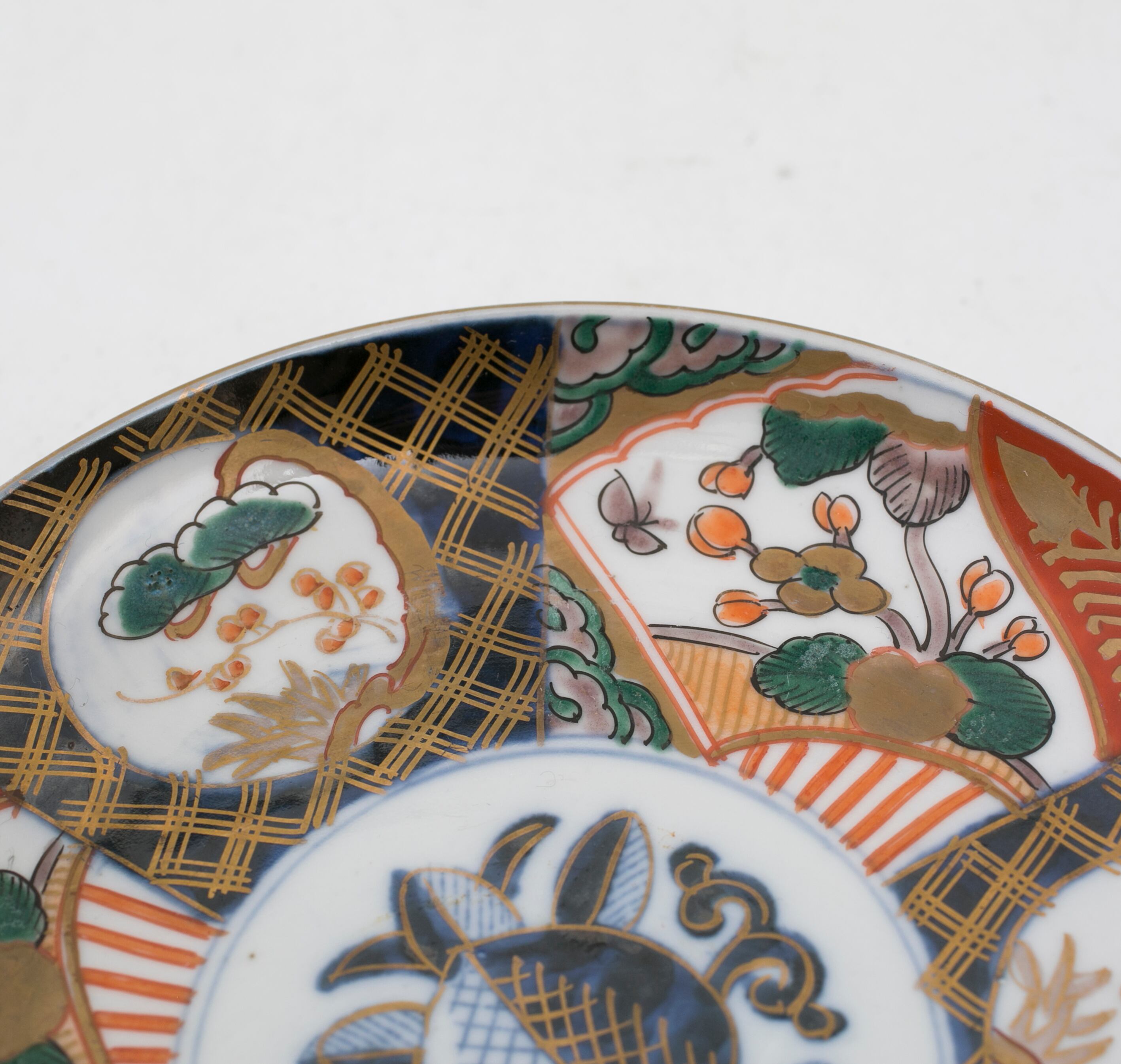 伊万里 色絵金彩 赤絵 錦手 松竹梅丸紋 6寸 六寸 18センチ 柘榴 格子 平皿 中皿 ケーキ皿取り皿として 角富 宝尽くし文 吉祥文様 鍵 分銅 アンティーク 和骨董 和食器 用の美 テーブルコーディネート ザクロ 窓絵 羊歯【BA311】