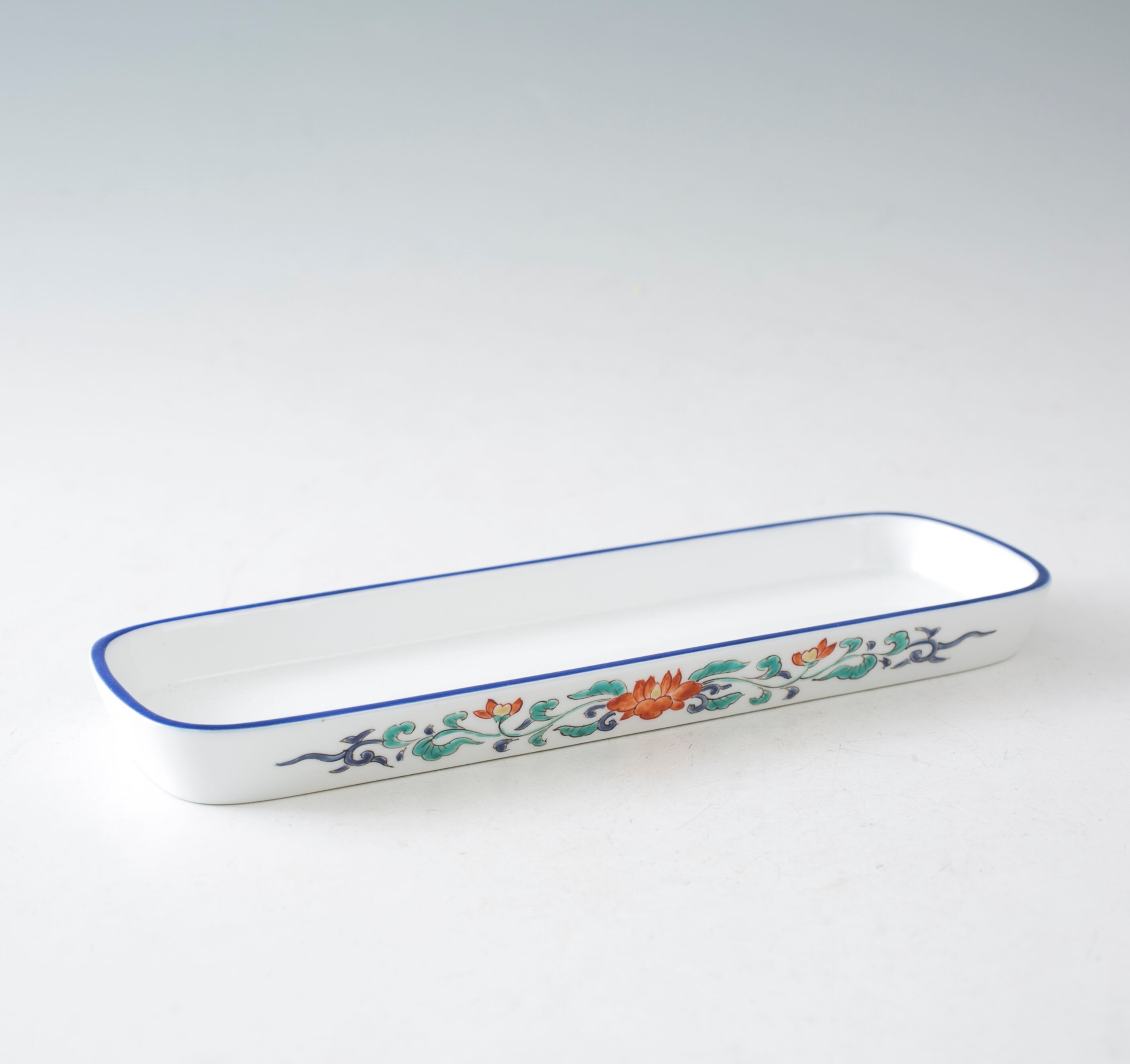 13代 十三代 酒井田柿右衛門 唐花文 ペン皿 人間国宝 肥前有田 有名窯元 人気作家 陶芸家 有田焼 ペントレイ 筆記用具 文房具 デスク用品 調度品 角盆 角皿 スクエア【BA317】