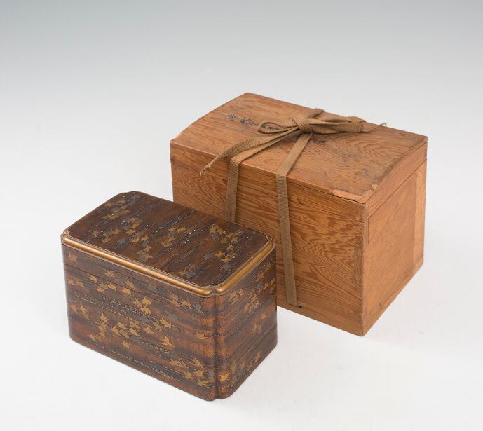 梨子地 千鳥蒔絵 茶箱 波千鳥 青貝 螺鈿 時代物 時代蒔絵 金蒔絵 茶通箱 香箱 茶箱 蒔絵箱 蒔絵筥 小箱 蒔絵 茶道具 香道具 茶会 漆器 漆芸 日本の美 アンティーク 和骨董 らでん 仕覆付【BC52】
