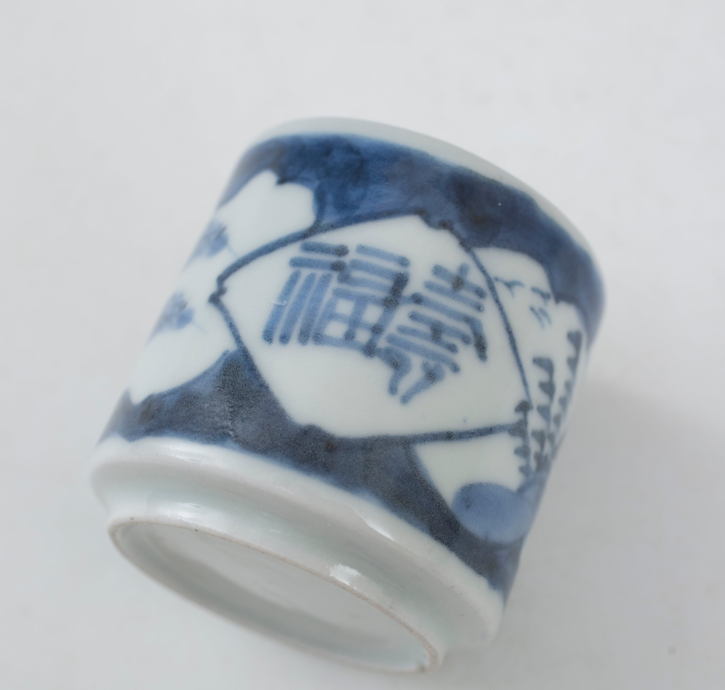 伊万里 のぞき猪口 染付 覗 盃 おちょこ 酒器 窓絵 山水 福寿字 格狭間 ぐいのみ 古陶磁 日本骨董陶磁 ぐい呑 暮らしの骨董 生活骨董 用の美 アンティーク コレクション 陶芸 有田 和食器 モダンデザイン 【BC77】 | 3hige antique store | 京都・古門前の古美術店 | 三髭堂
