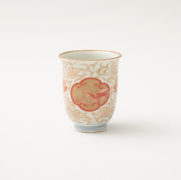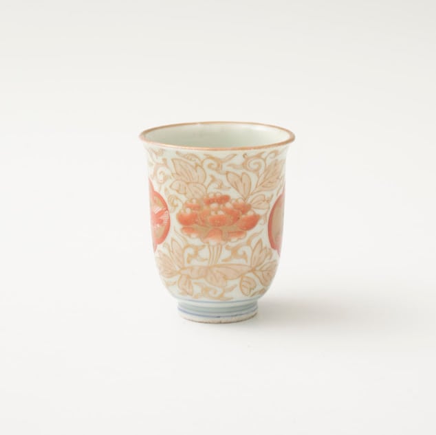伊万里 色絵金彩 牡丹唐草に龍文 猪口 古伊万里 酒器 のぞき 小筒向 江戸時代 後期 幕末 和食器 和骨董 日本の美 日本古陶磁 暮らしの骨董 生活骨董 用の美 アンティーク コレクション【BC100】