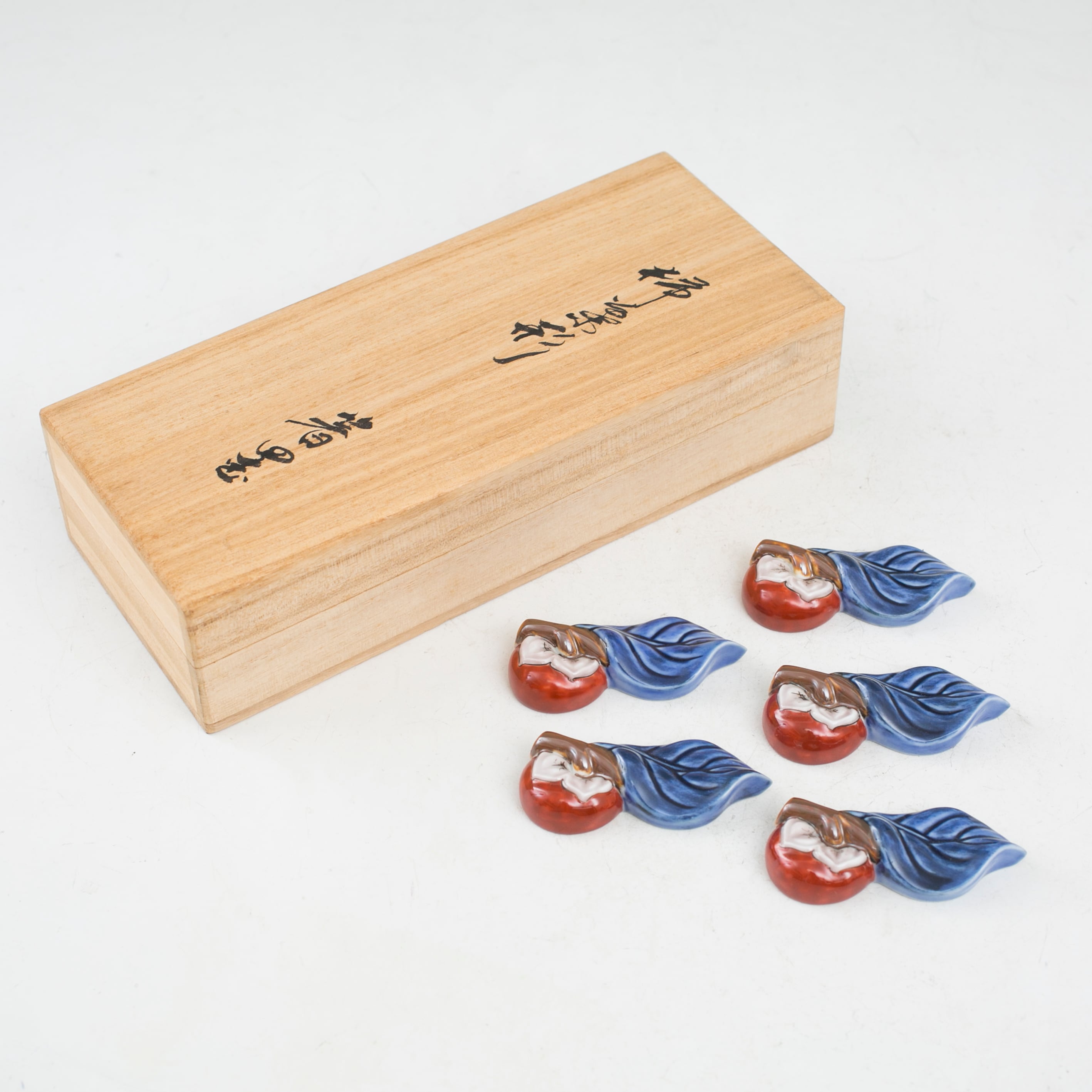 14代 十四代 酒井田柿右衛門 染錦 箸置 箸置き はしおき 柿葉形 五客組 揃 セット 共箱 人間国宝 肥前有田 有名窯元 人気作家 陶芸家 有田焼 日常使い 和食器 カトラリー ハレの日にも 【BA343】 | 3hige antique store | 京都・古門前の古美術店 | 三髭堂